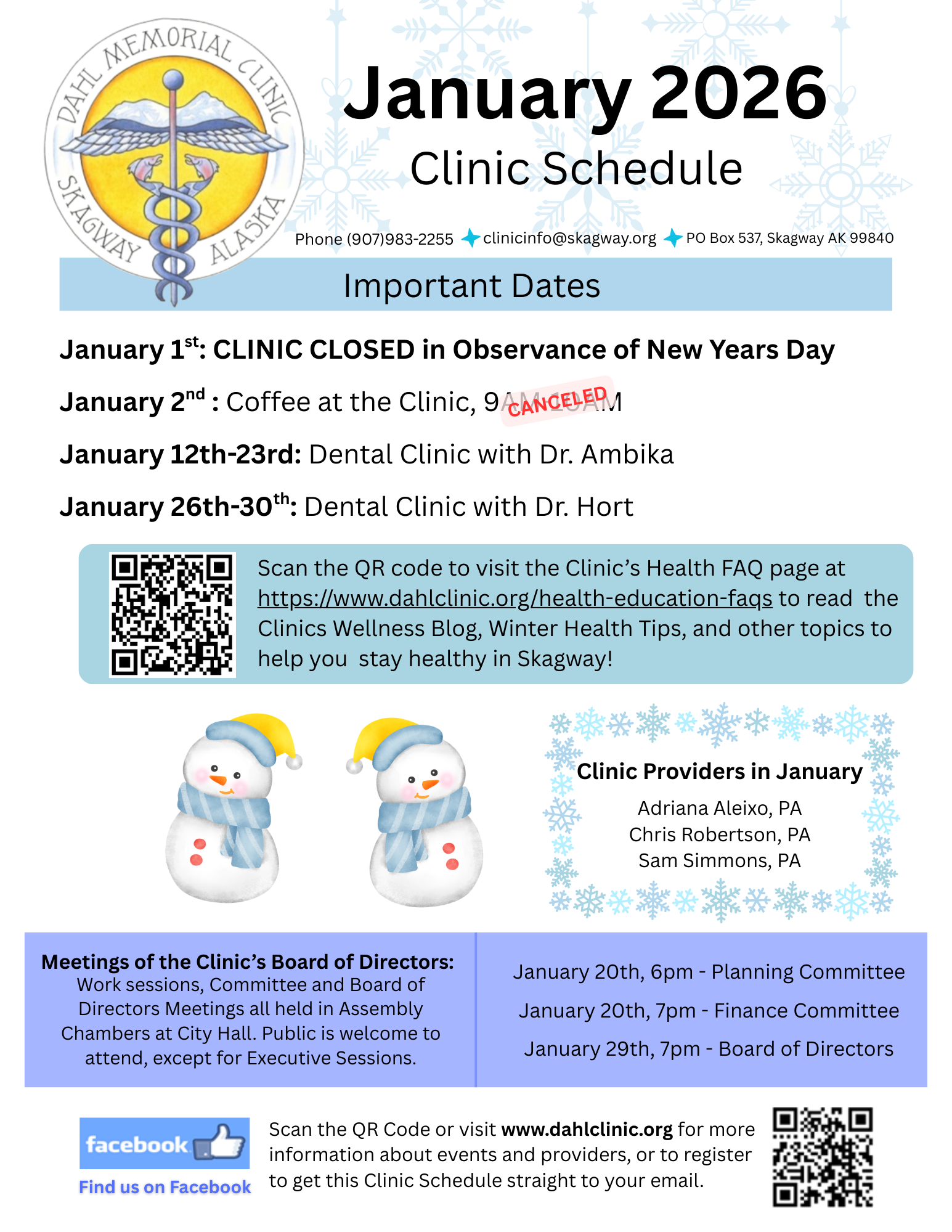 Please send questions and comments specifically about the potential of a 501(c)3 non-profit status for the Clinic to clinicinfo@skagway.org.