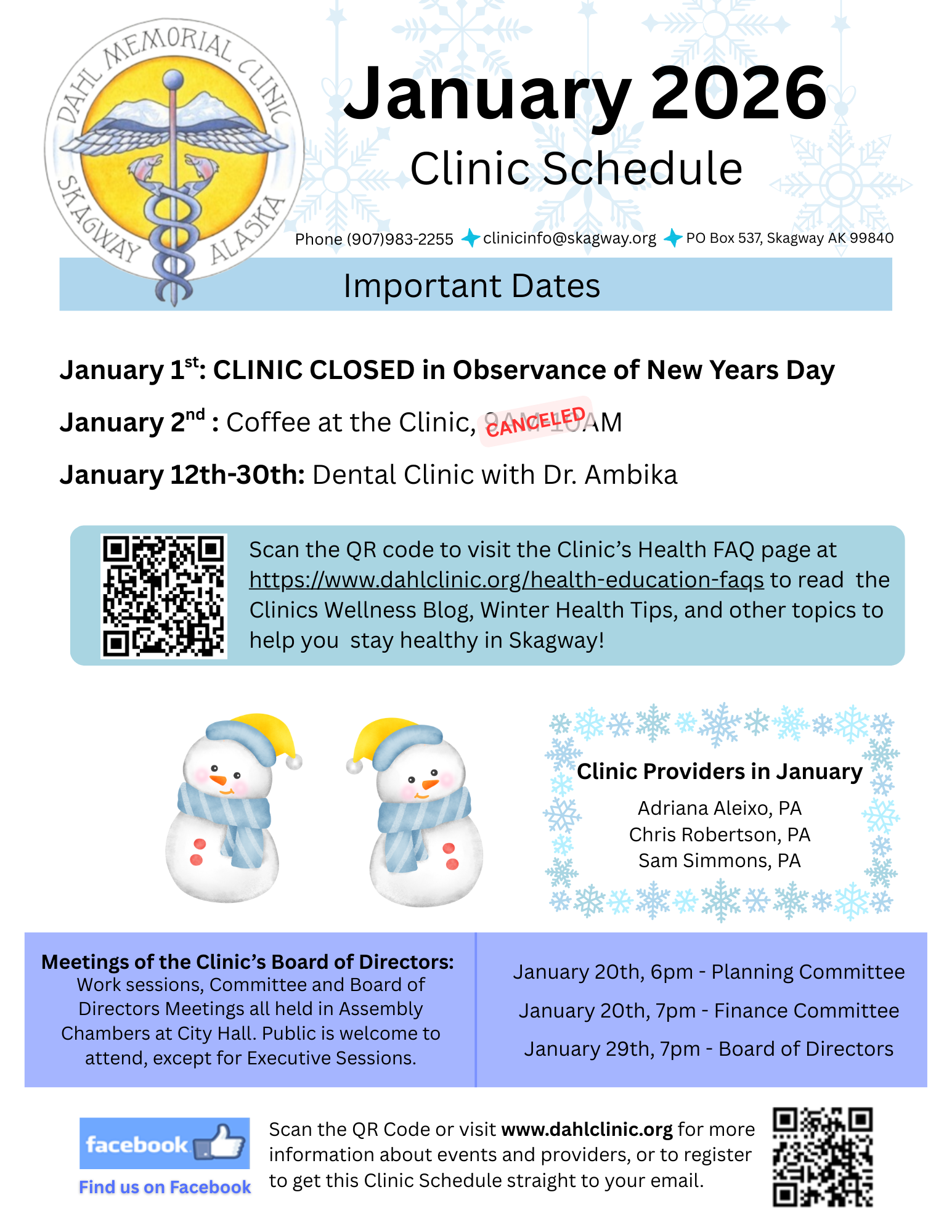 Please send questions and comments specifically about the potential of a 501(c)3 non-profit status for the Clinic to clinicinfo@skagway.org.